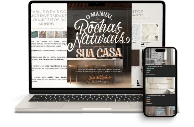 O Guia Definitivo dos Mármores e Quartzitos foi pensado para profissionais da área da arquitetura, com informações mais técnicas sobre as rochas. O Manual de Rochas Naturais para a sua Casa tem a linguagem mais didática e voltada exclusivamente para a escolha da rocha natural de cada ambiente, com informações valiosas do meu método após atender centenas de consultorias para clientes finais e saber exatamente quais são suas maiores dificuldades.